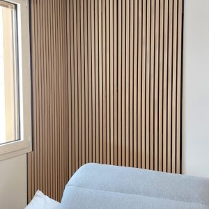 I pannelli sono rivestiti con un guscio protettivo che non solo preserva la bellezza naturale del legno ma ne facilita anche la pulizia. Questa barriera resistente permette di rimuovere la polvere con un semplice panno e di eliminare lo sporco con una spugna umida, senza il bisogno di prodotti specifici, mantenendo l’estetica del pannello nel tempo con il minimo sforzo.